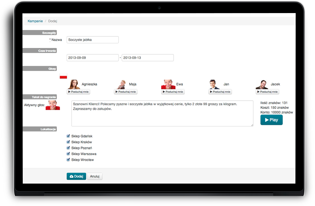 Po prostu napisz tekst i wybierz jeden z pięciu profesjonalnych głosów, który ma go przeczytać.